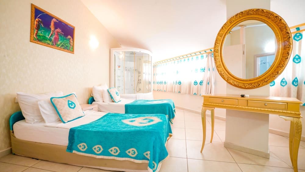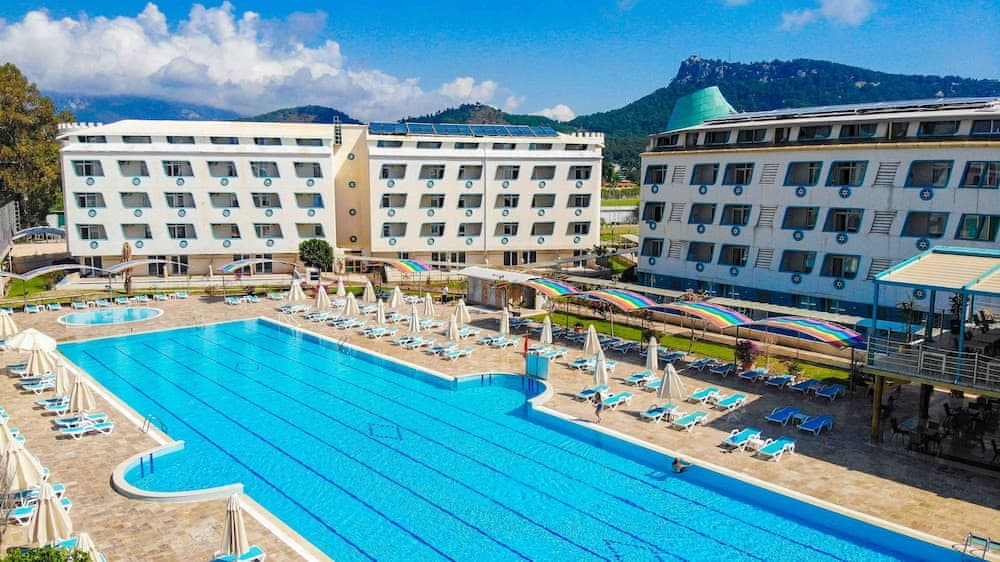 Located in Kemer, Daima Biz Hotel - Dolusu Aquapark Access is by the sea, within a 10-minute drive of Liman Street and Kemer Marina. This all-inclusive property is 3.5 mi (5.6 km) from Kemer Merkez Bati Public Beach and 3.6 mi (5.8 km) from Moonlight Beach and Park.