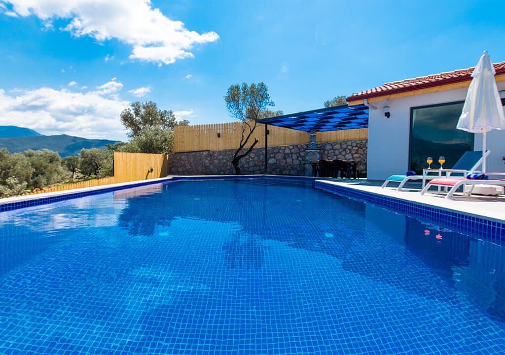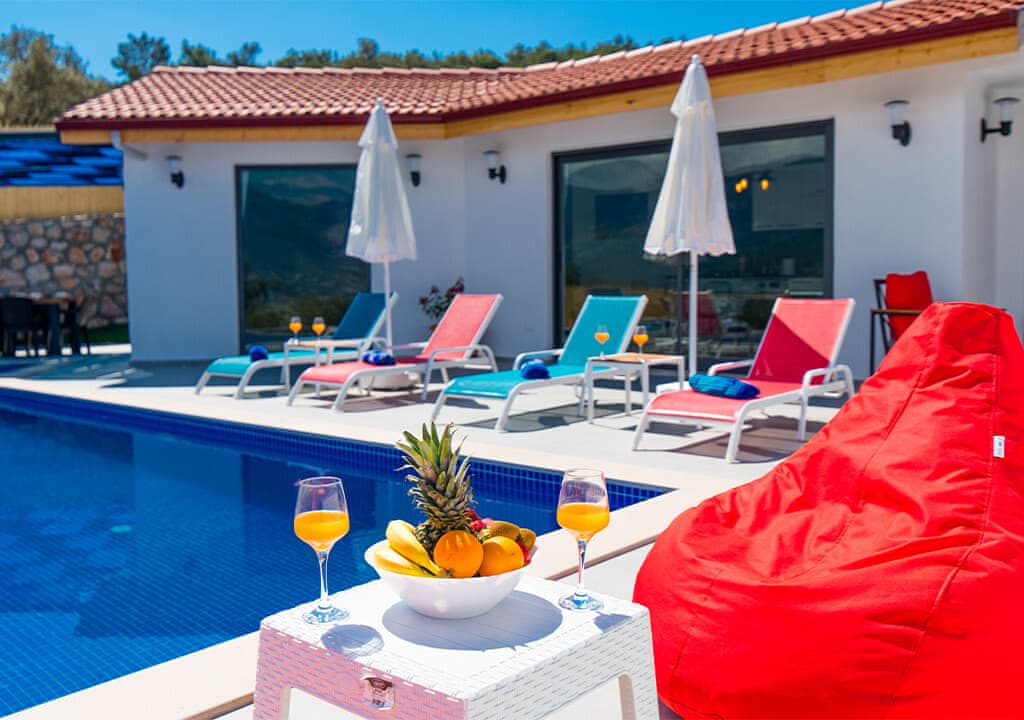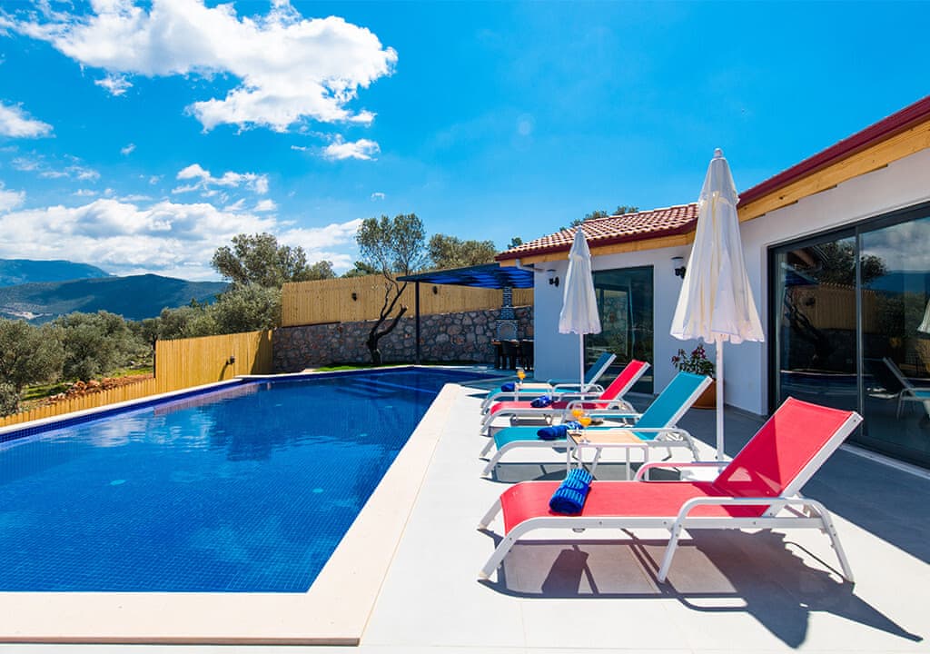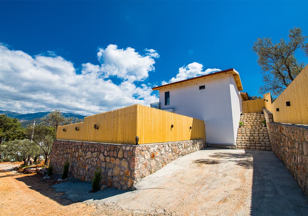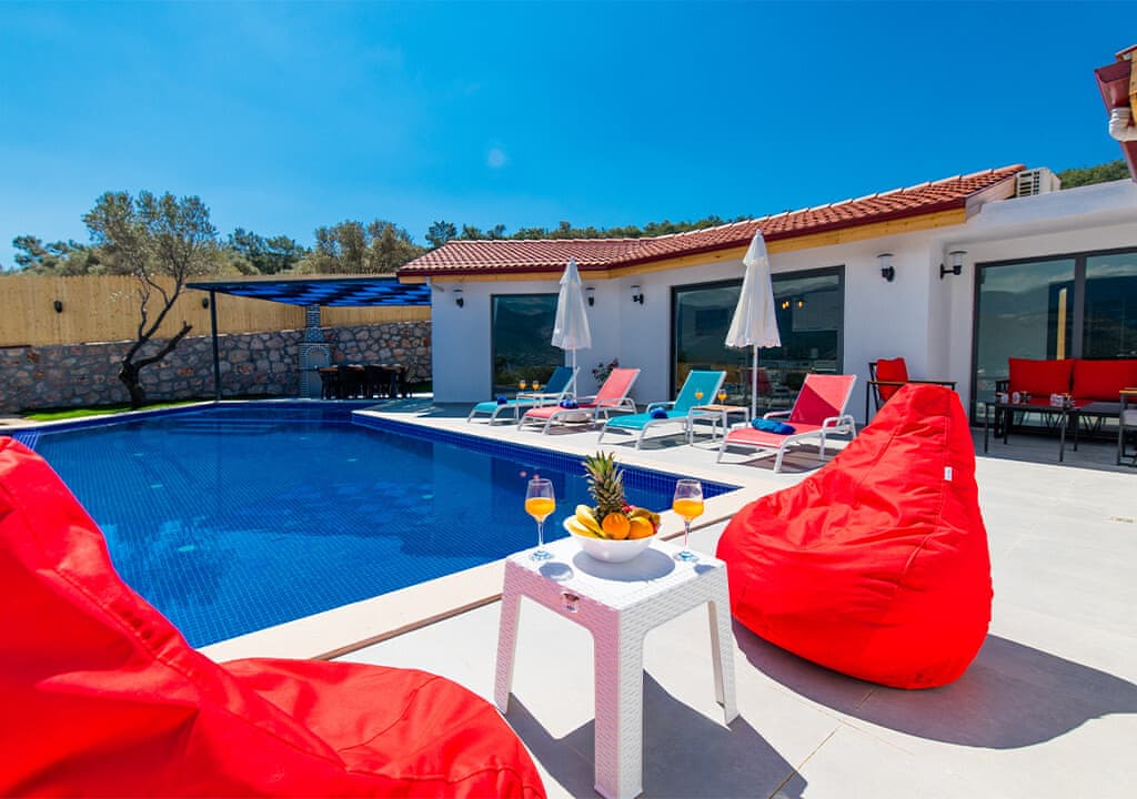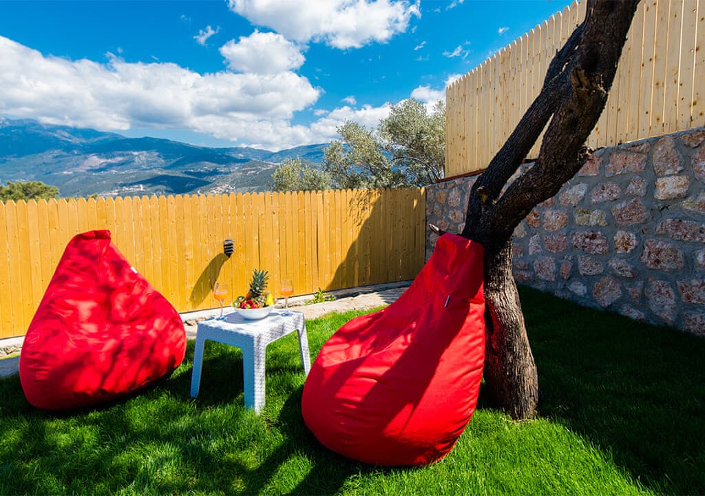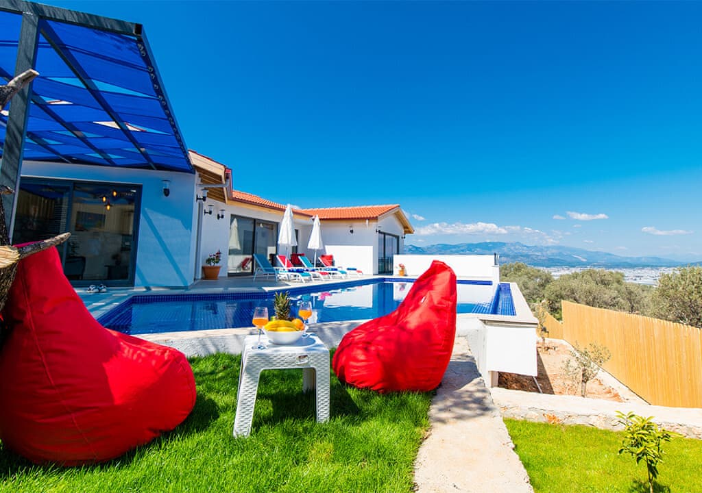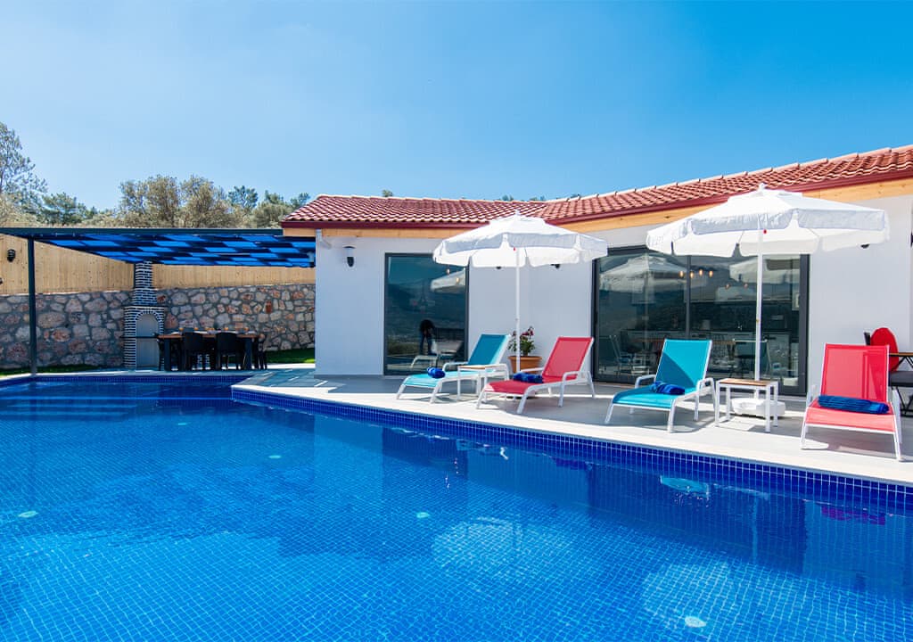 Villa Happy, located in the Yeşilköy area of Kalkan, is a two-bedroom villa accommodating up to four guests. Nestled within nature, the villa's pool and garden areas are not visible from the outside. It is an ideal choice for conservative families and honeymoon couples.