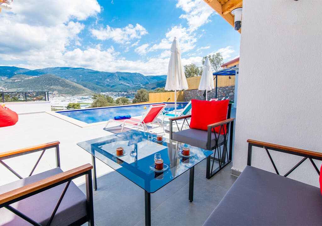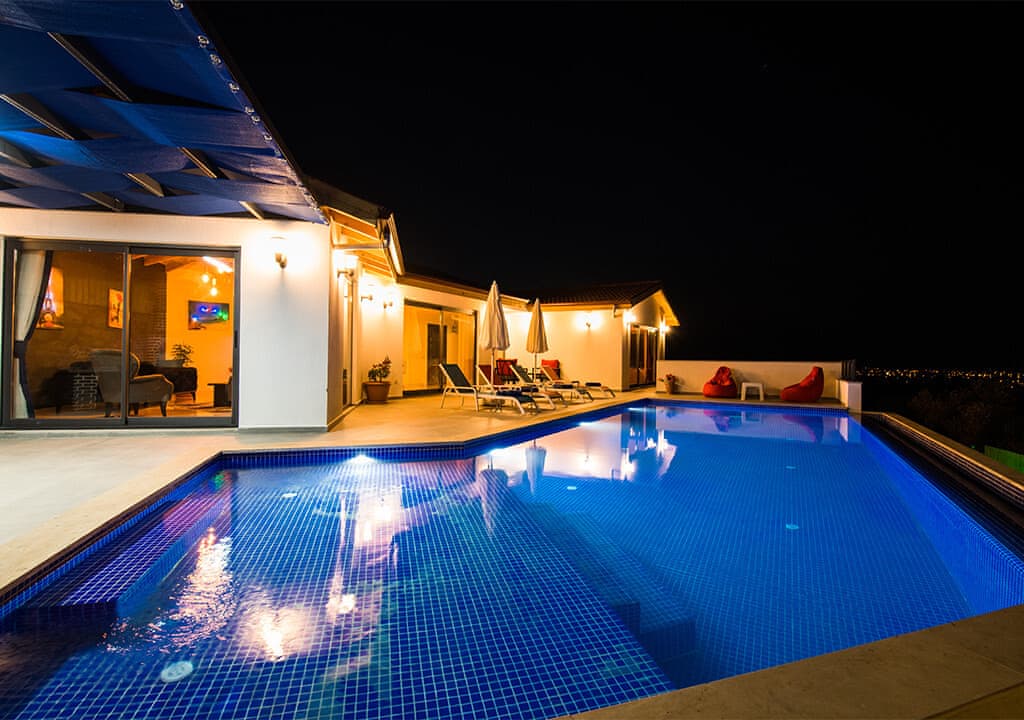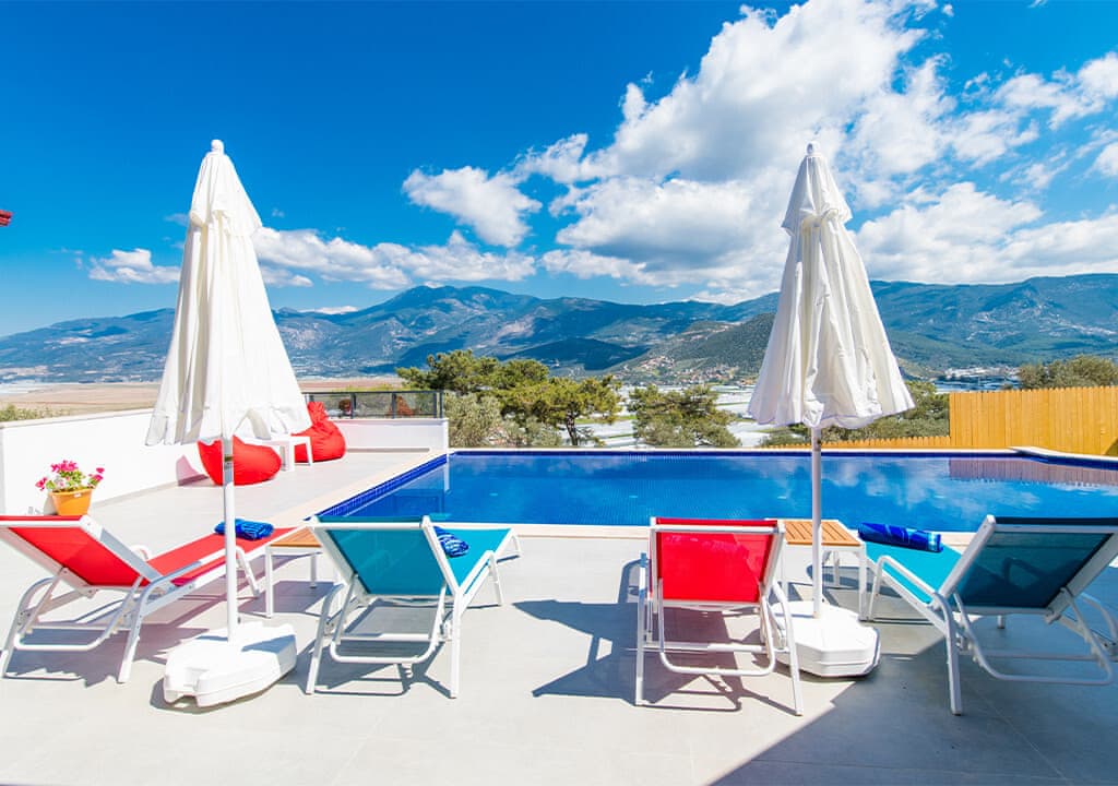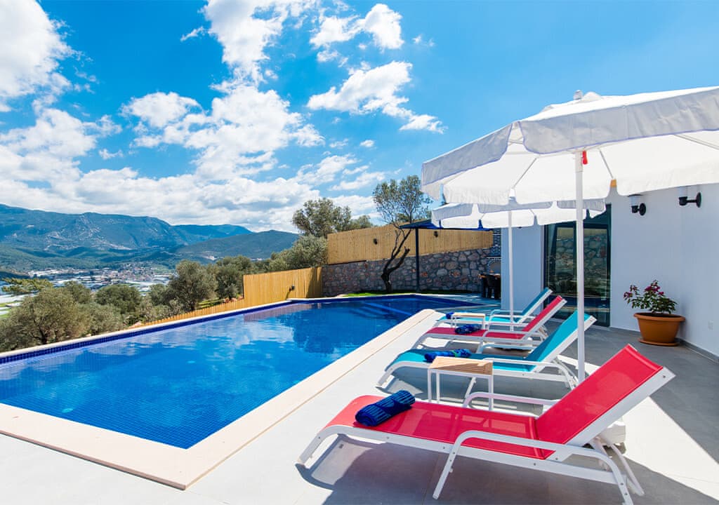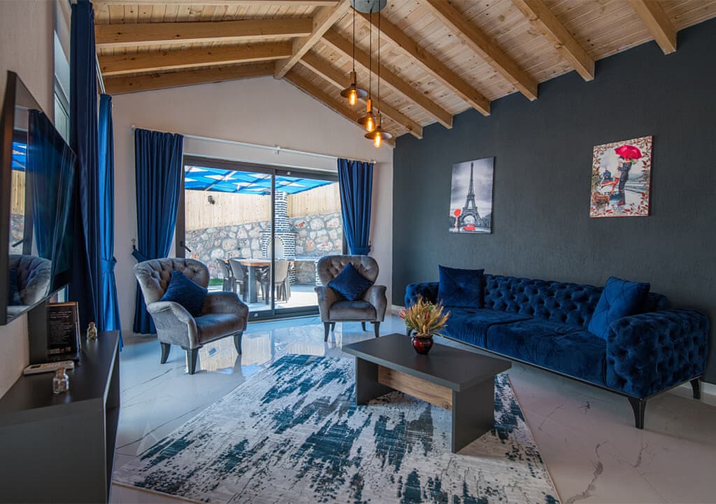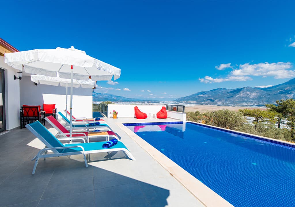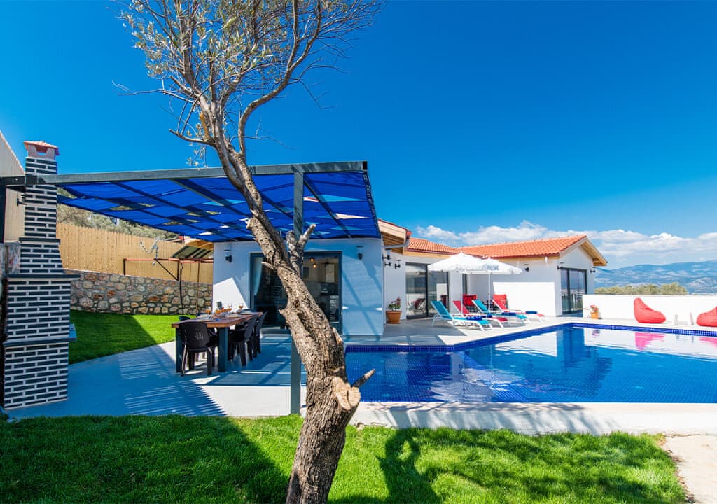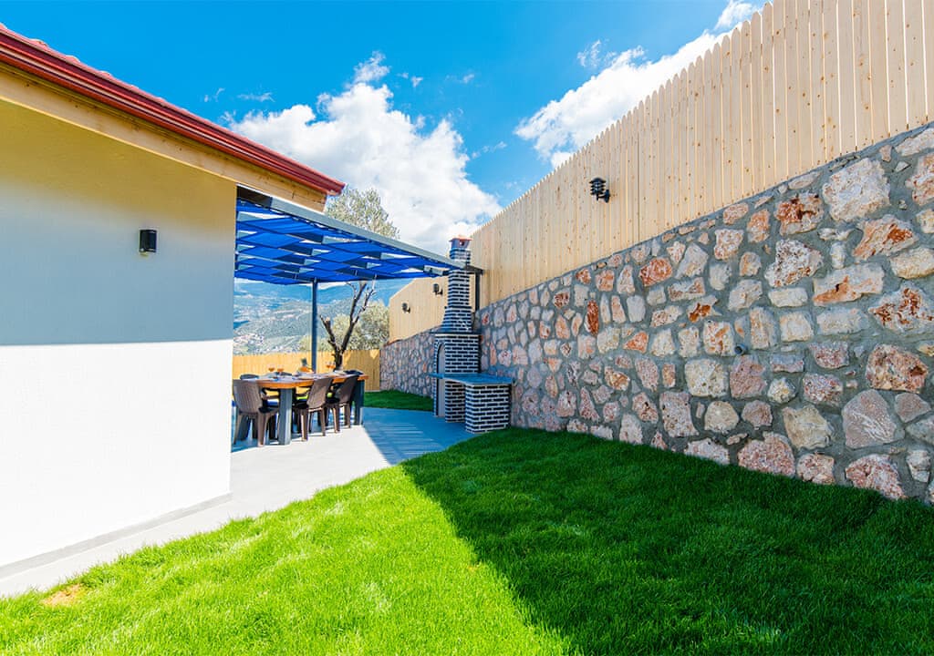 Villa Happy, located in the Yeşilköy area of Kalkan, is a two-bedroom villa accommodating up to four guests. Nestled within nature, the villa's pool and garden areas are not visible from the outside. It is an ideal choice for conservative families and honeymoon couples.