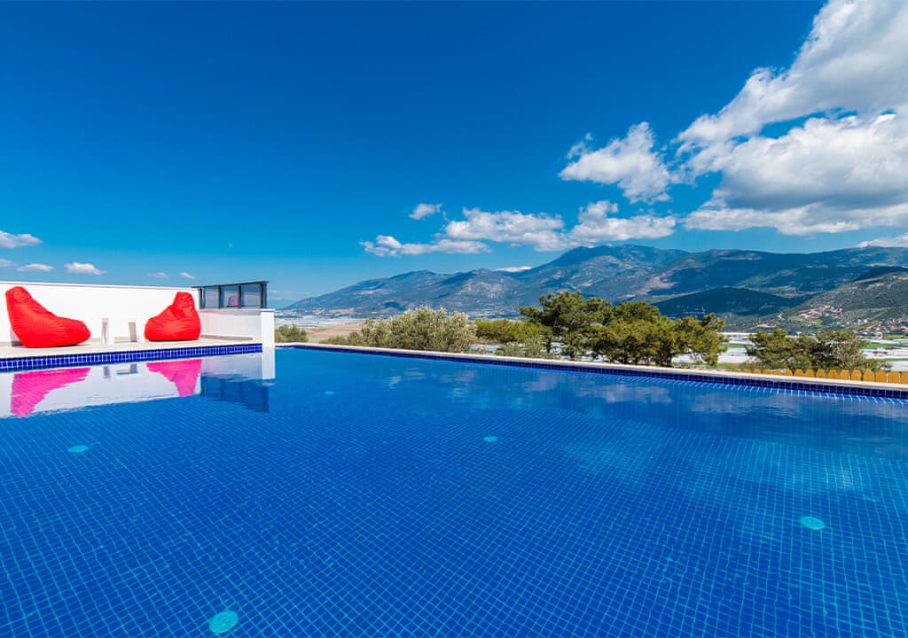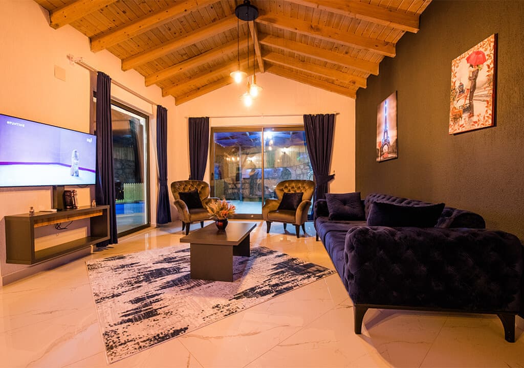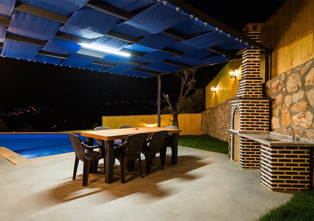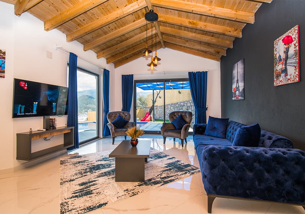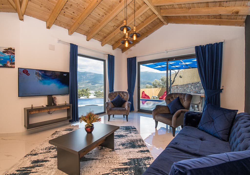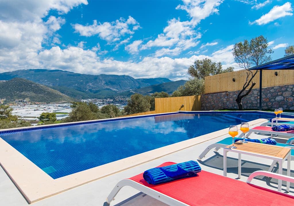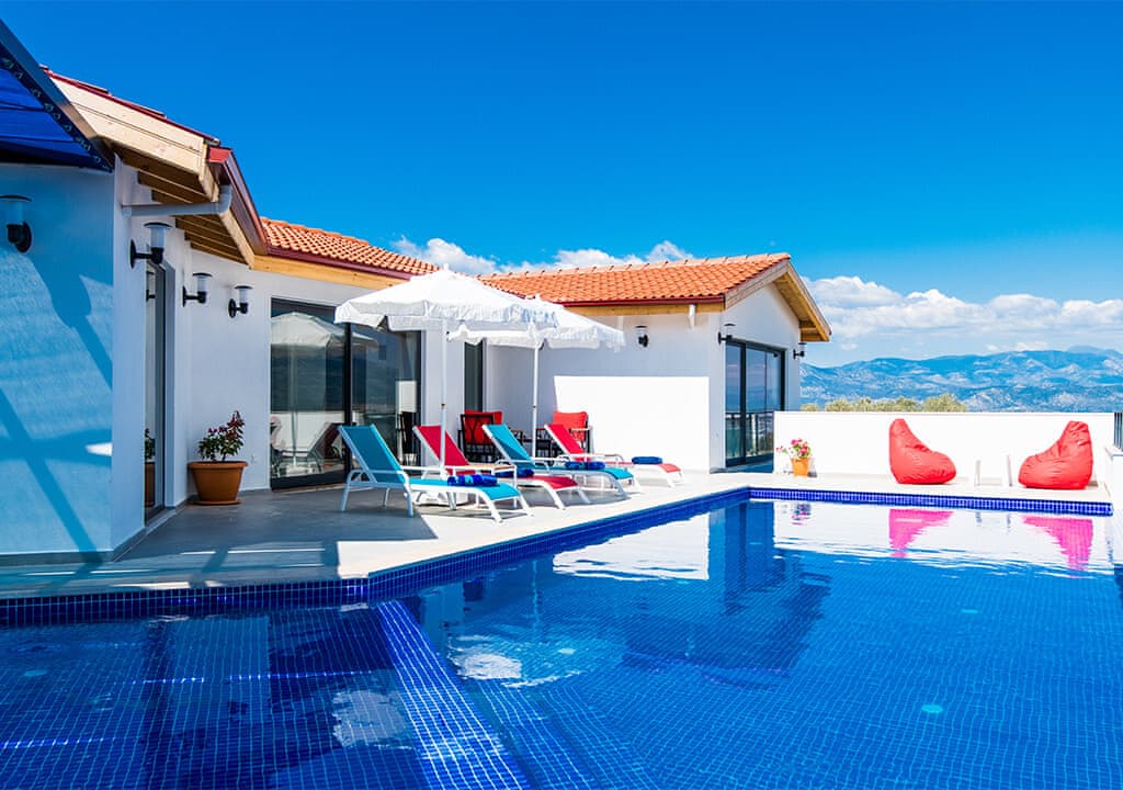 Villa Happy, located in the Yeşilköy area of Kalkan, is a two-bedroom villa accommodating up to four guests. Nestled within nature, the villa's pool and garden areas are not visible from the outside. It is an ideal choice for conservative families and honeymoon couples.