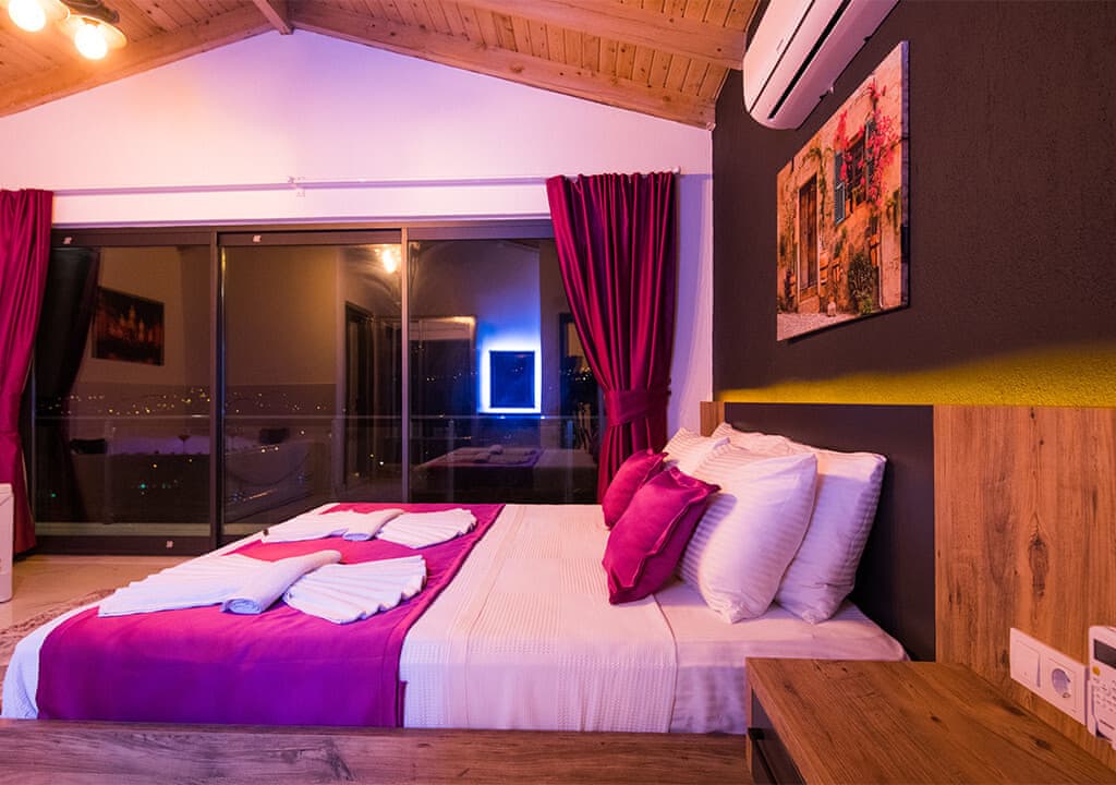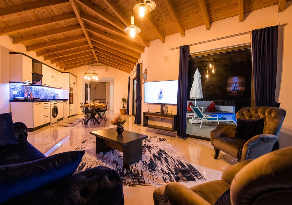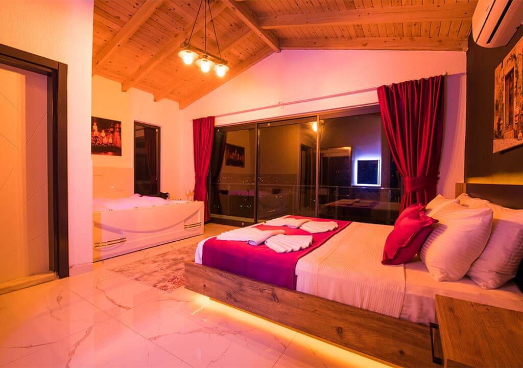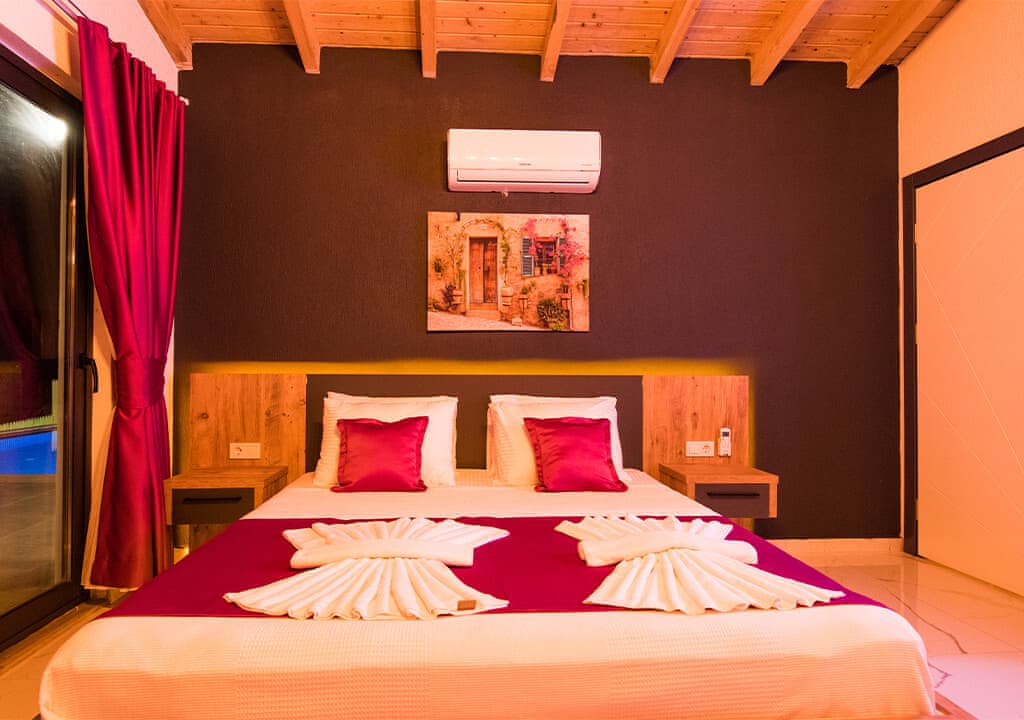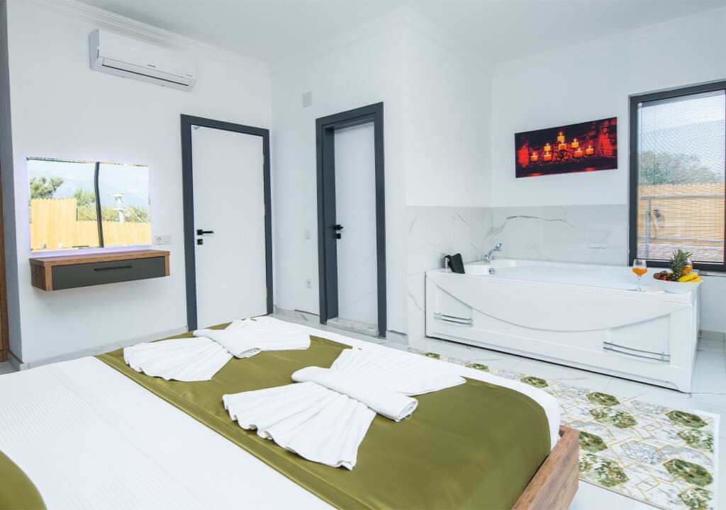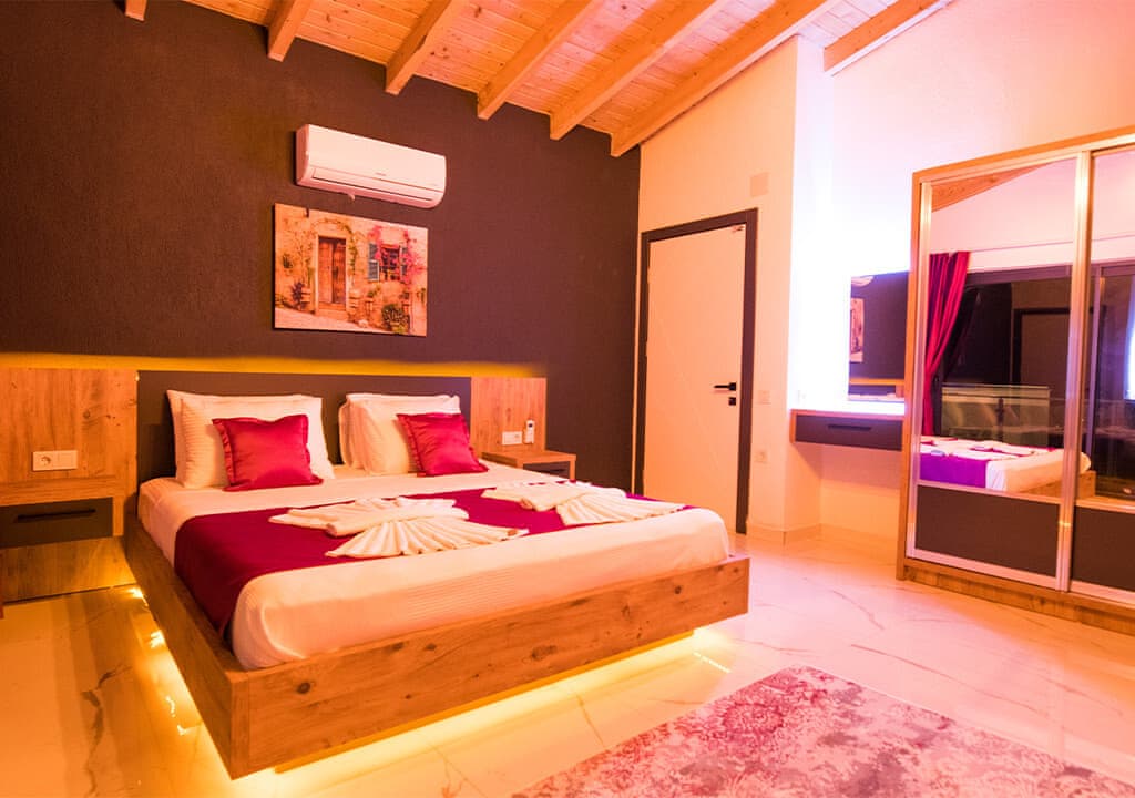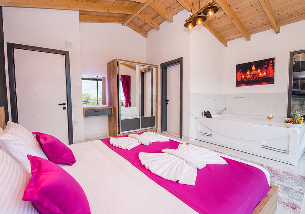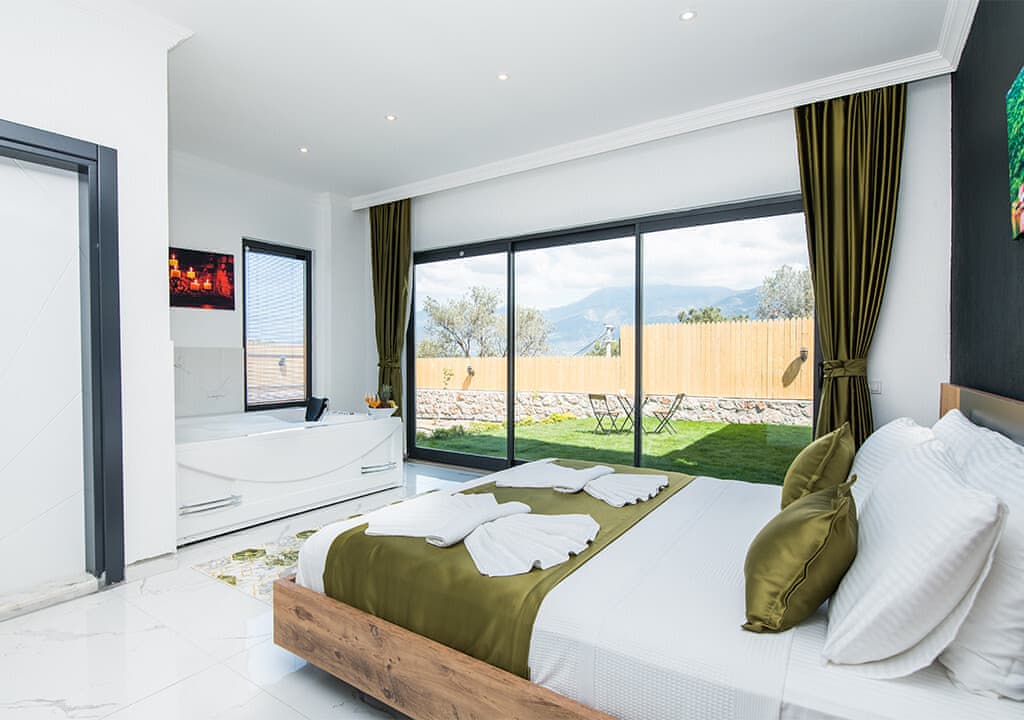 Villa Happy, located in the Yeşilköy area of Kalkan, is a two-bedroom villa accommodating up to four guests. Nestled within nature, the villa's pool and garden areas are not visible from the outside. It is an ideal choice for conservative families and honeymoon couples.