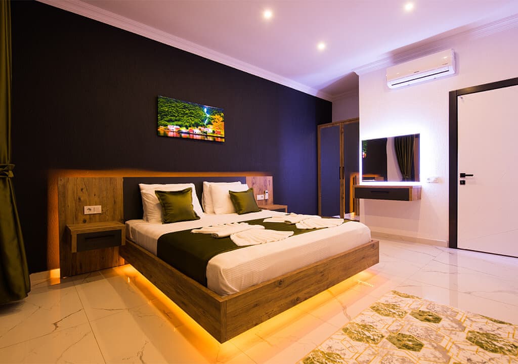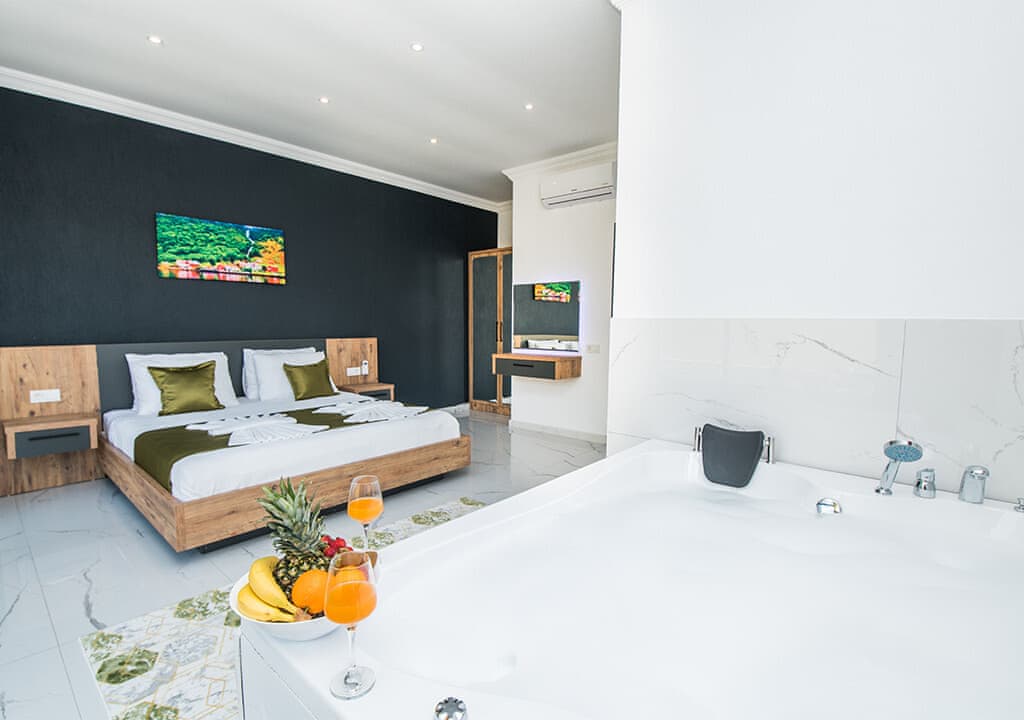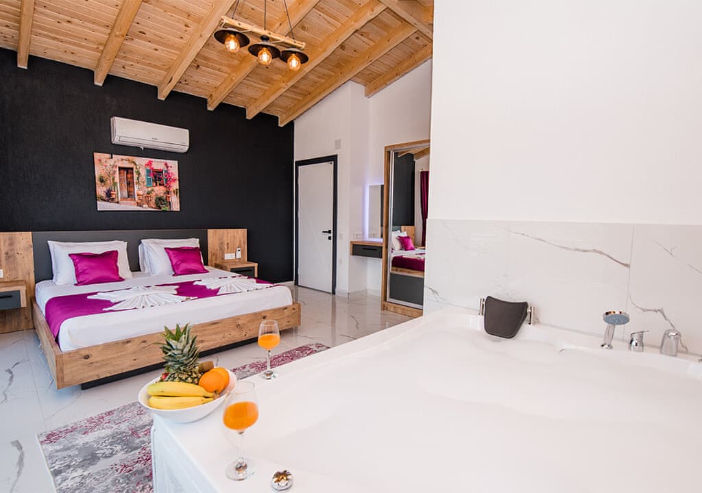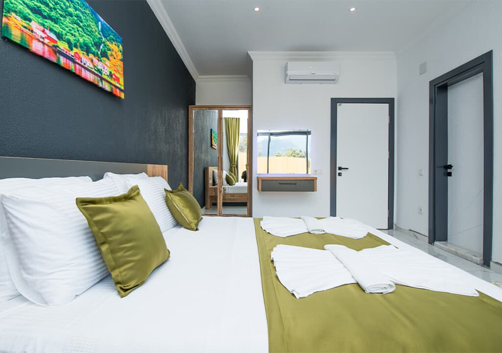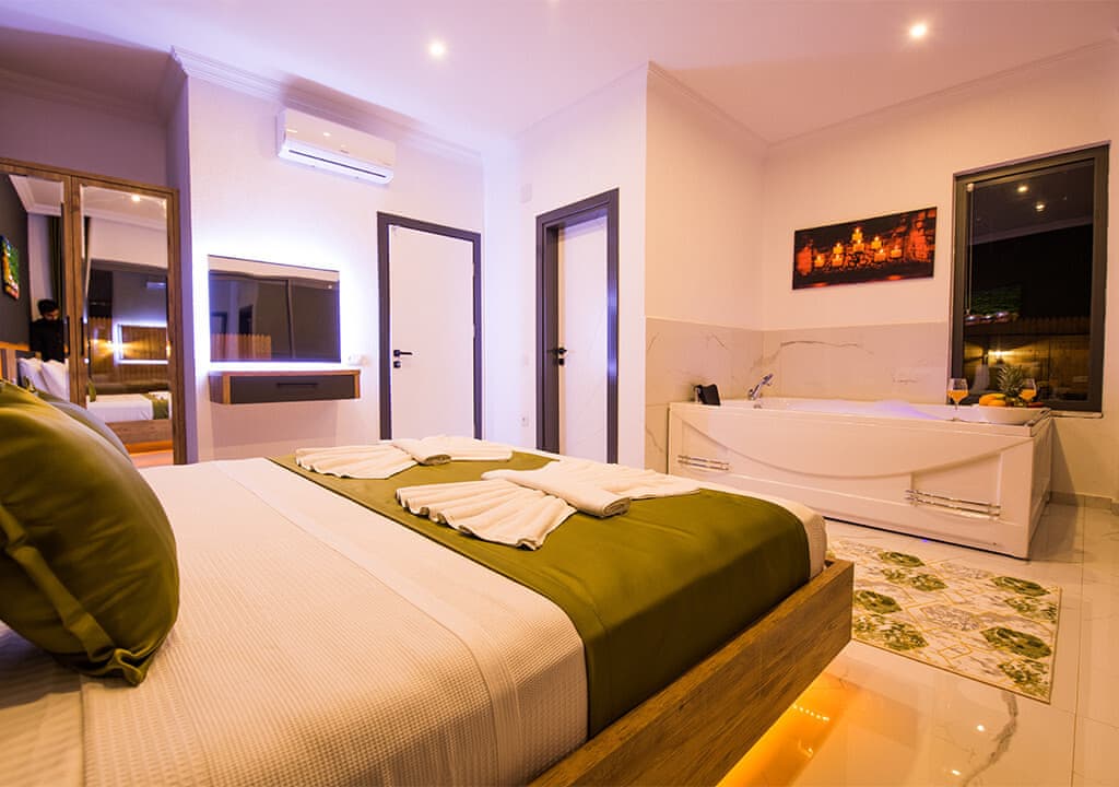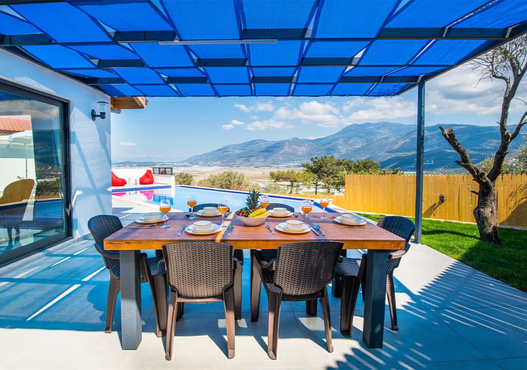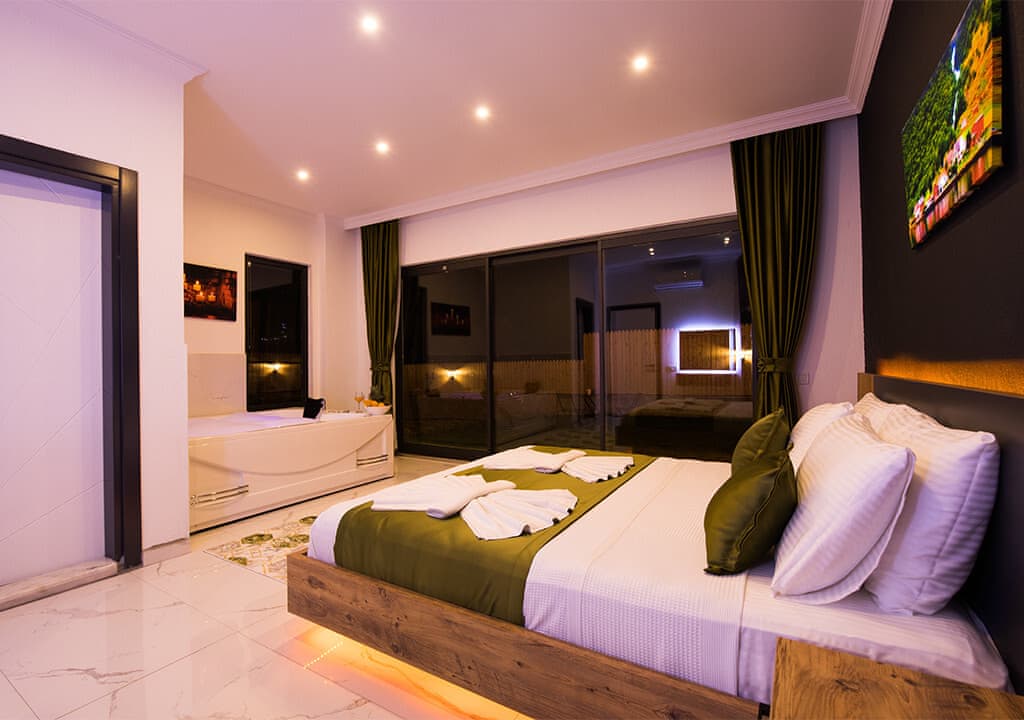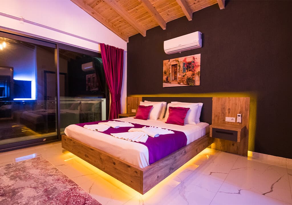 Villa Happy, located in the Yeşilköy area of Kalkan, is a two-bedroom villa accommodating up to four guests. Nestled within nature, the villa's pool and garden areas are not visible from the outside. It is an ideal choice for conservative families and honeymoon couples.