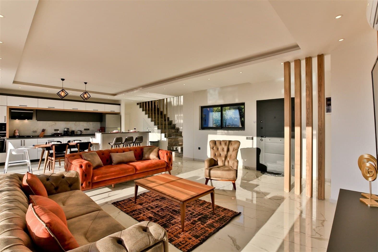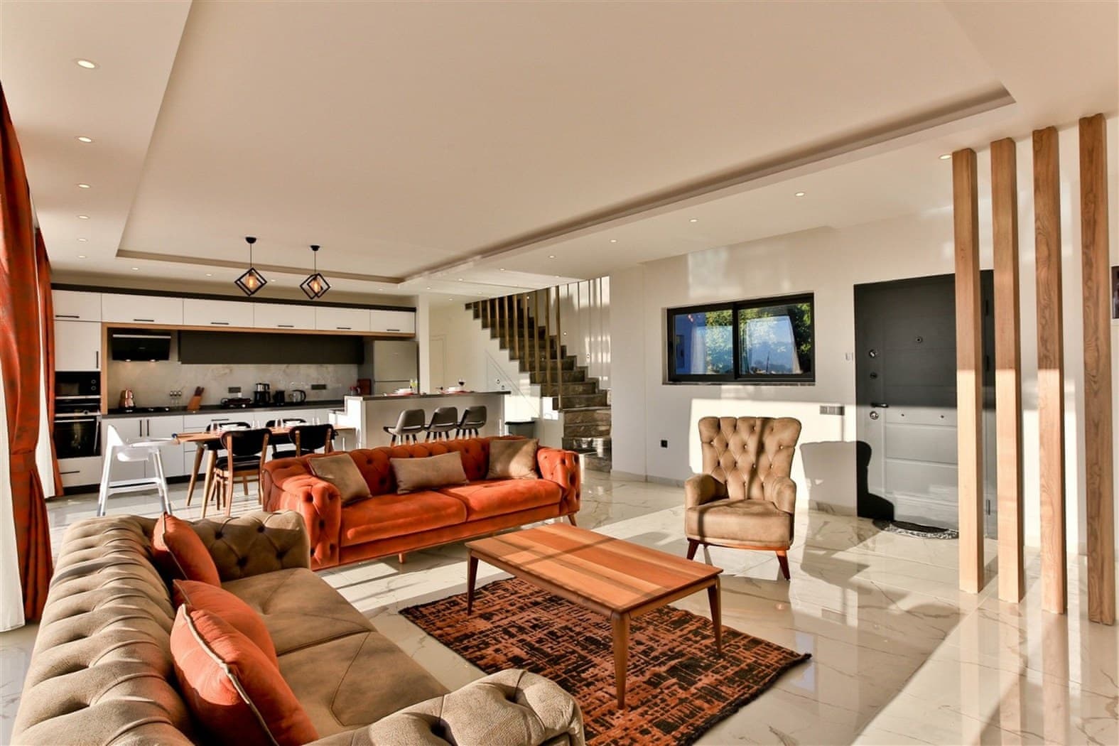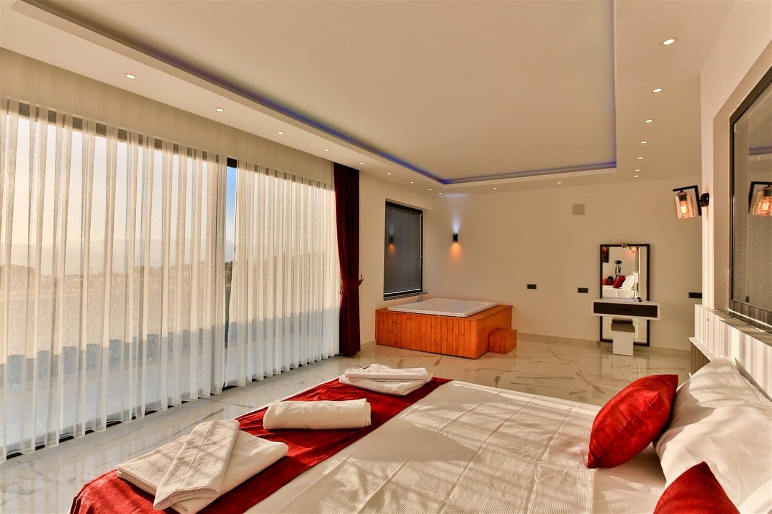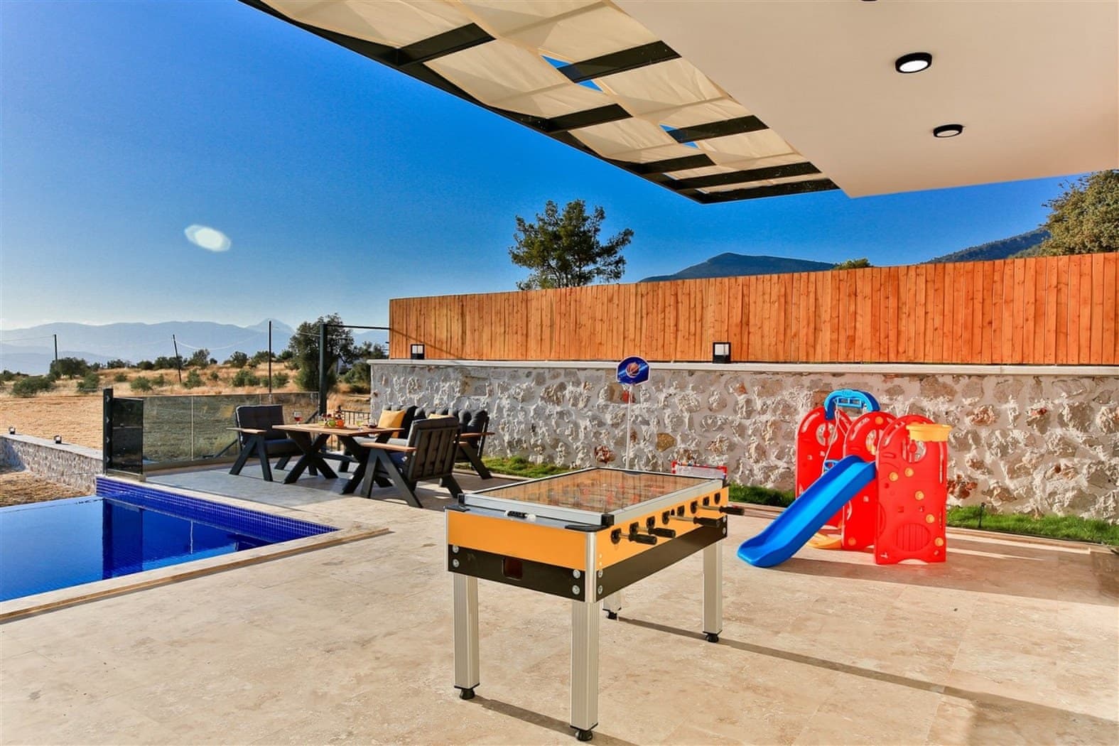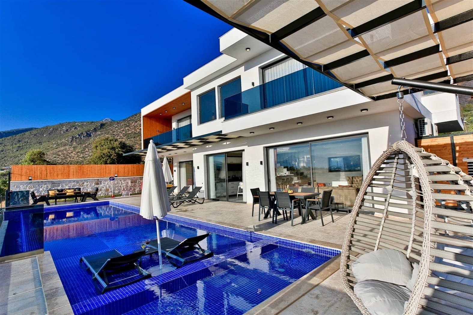Located in Uzumlu area in Kalkan, this villa possesses three bedrooms with a secluded outdoor pool, a suitable choice for large families.
